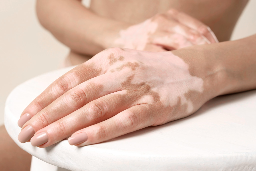 Die hellen Hautbereiche können mittels Camouflage-Pigmentierung der umliegenden Hautfarbe angepasst werden, sodass ein ebener Kontrast gegeben ist.